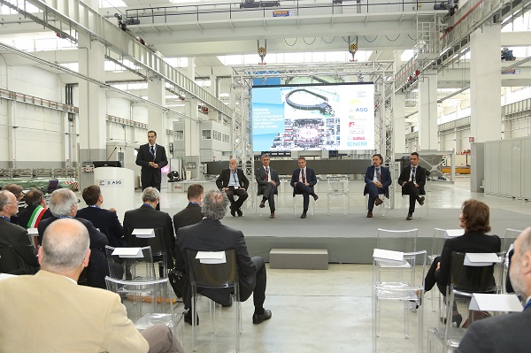 Davide Malacalza, Managing Director of Hofima SpA and Chairman of ASG Superconductors, opened the event giving a warm welcome to all guests by offering an overview of the group’s activities. ASG counts a collaboration of more than 50 years with EU research centres. The company has become a pioneer in magnets technology and has managed to retrain its staff by being involved in scientific and medical projects. Massimo Federici, the mayor of La Spezia, congratulated the people involved in this milestone and stressed the economic effects stemming from the industrial facility for the city and the region. The transformation of this facility has also been addressed by Edoardo Rixi, regional councilor of Luguria for industry, who explained that equipping people with new skills helps us to unleash both their potential and that of the region.