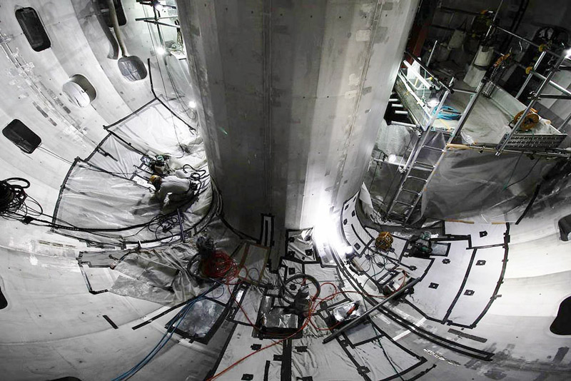 The JT-60SA vacuum vessel, in a sense the heart of the machine where the fusion reaction will take place, consists of 10 sectors made of 316 L stainless steel, 6.6 metres high and 3.5 metres wide, each weighing around 17 tonnes. All sectors have been manufactured by Toshiba as part of JAEA´s contribution to the JT-60SA project under the Broader Approach Agreement between Europe and Japan. The vacuum vessel, with a diameter of 10 metres and a height of 6.6 metres, has been assembled respecting maximum tolerances of the order of a few millimetres!